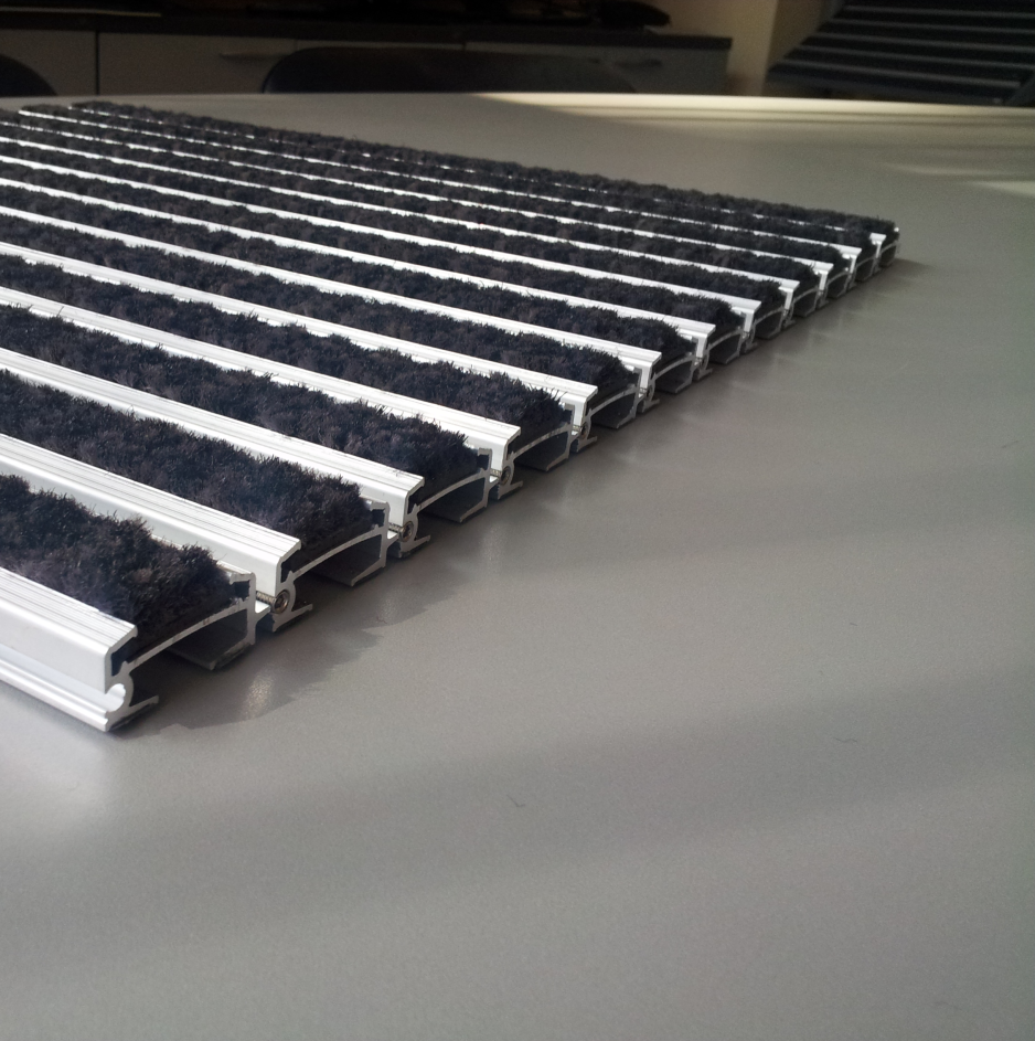 Ky model përbëhet nga profile alumini me inserte prej tapeti shumë rezistent Coral Brush Active, me strukturë pile të prerë nga 100% PA BCF.